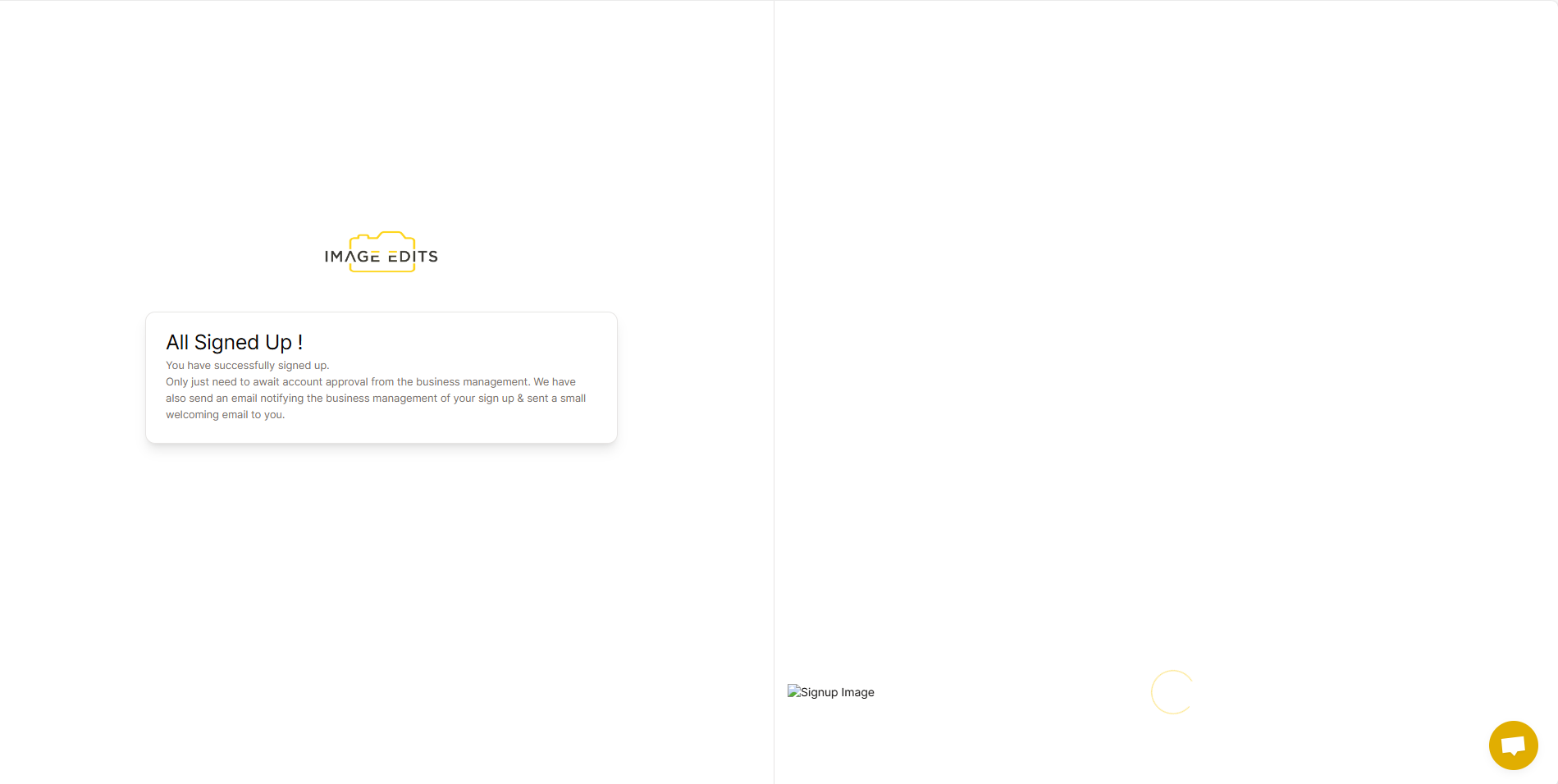 Once done, "All Signed Up" appear. You just need to await approval of your account from the business management. The business owner will be notified by the system and also email of new user signup.