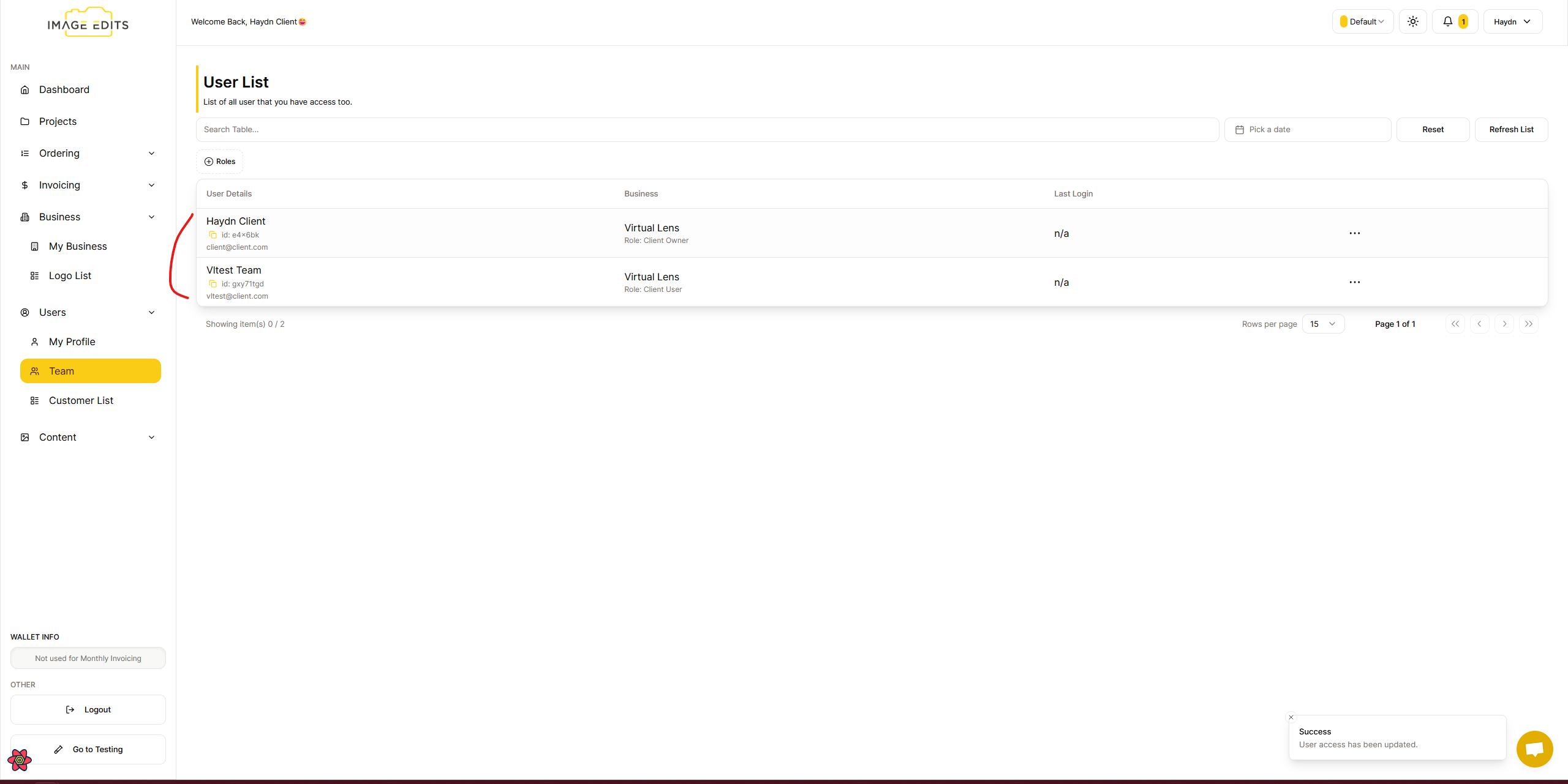 We are assuming you are currently logged in as a user that is owner of business (or internal Image Edits member).