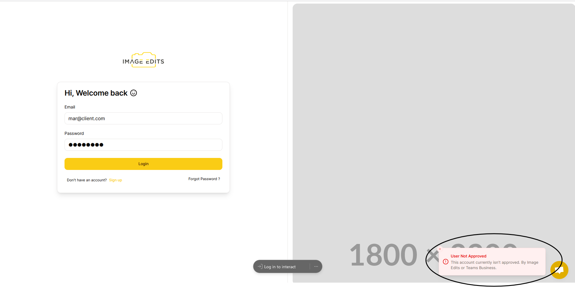 Upon attempting to log in, a popup notification will inform you that your account has not been approved.