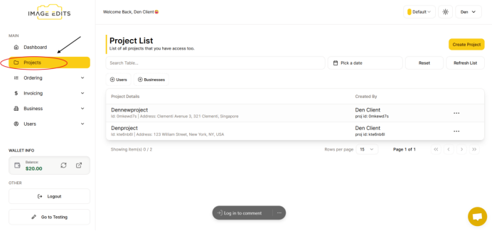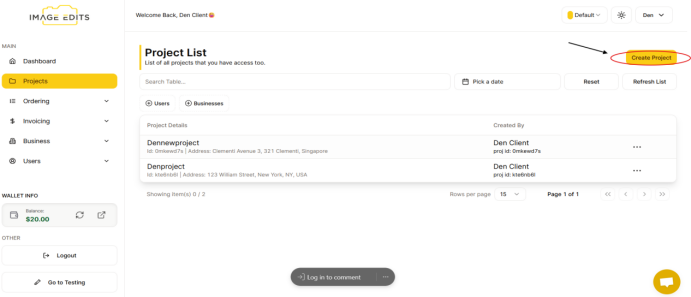 This section is going to show you how to create a project and then add/create an order linking that new order to the recently created project.