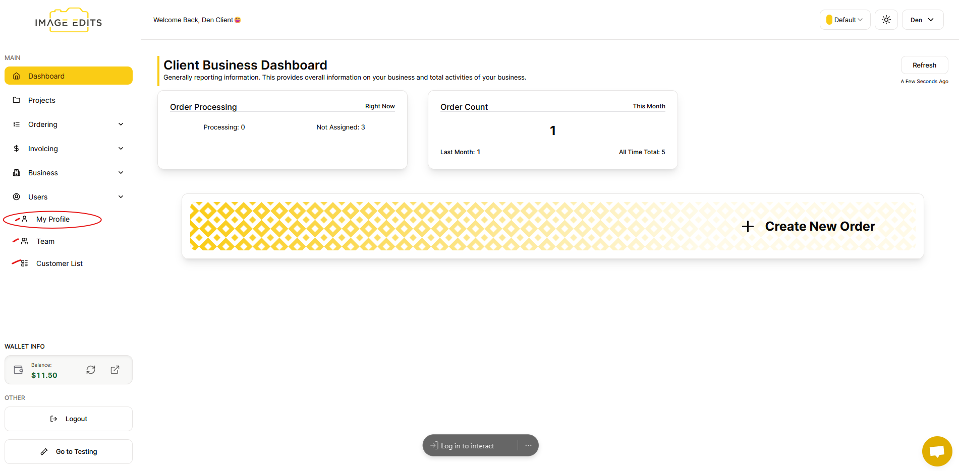 After clicking the users - My Profile, Team and Customers List will appear. Select My Profile menu item. (Or if business owner, you can go to the Team to select the team user you would like to edit profile of.)